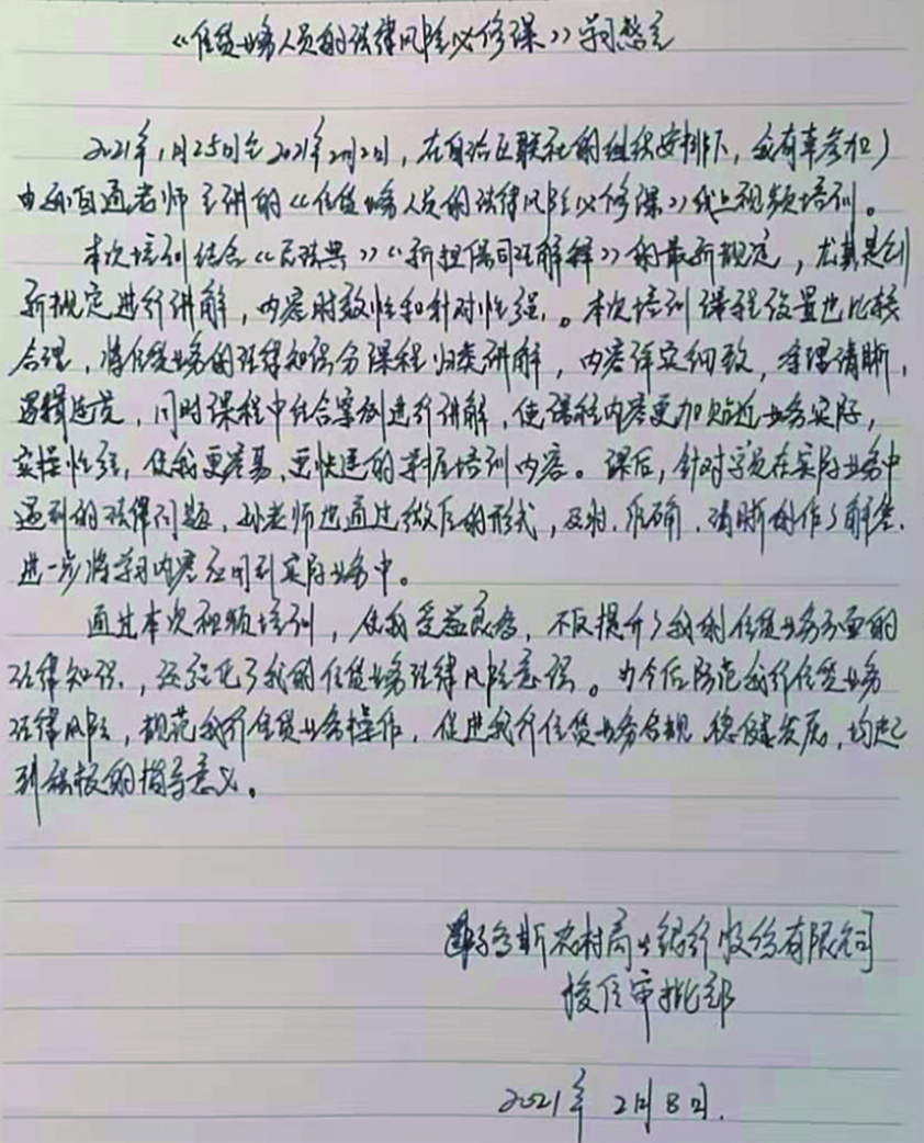 • 浙江省某城商行——《信貸業務視角下商業銀行內部審計人員的法律必修課》